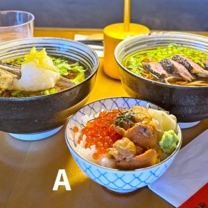薬味にはクレソンのシャキシャキ感を、天ぷらにはハワイ産の野菜を使用しています。さばや鴨の旨味がそばつゆに加わることで、より深い味わいに。ランチでは+$7でミニ丼が付けられ、日曜〜木曜の21:00〜閉店まで、レイトナイト・ハッピーアワーを開催中。