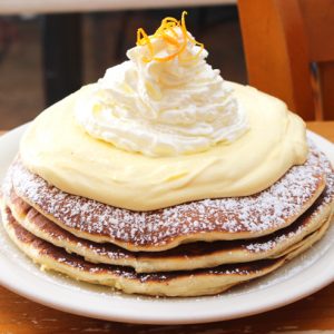 メープルソースにベーコンと黒胡椒を合わせた甘じょっぱい味わいとサクサクの食感ががクセになるコーンフレーク・フレンチトーストも必食の一皿。
