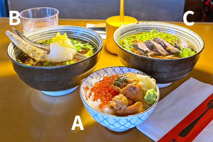 B. サバそば(温・冷):$17.50