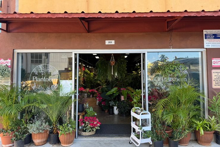 ワイアラエ通りとナインス通りの角にあるプランツショップ&カフェ。店内にはハワイ産の観葉植物や多肉植物など、オーナーがセレクトした素敵なプランツが豊富に並びます。
