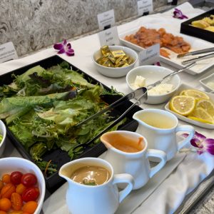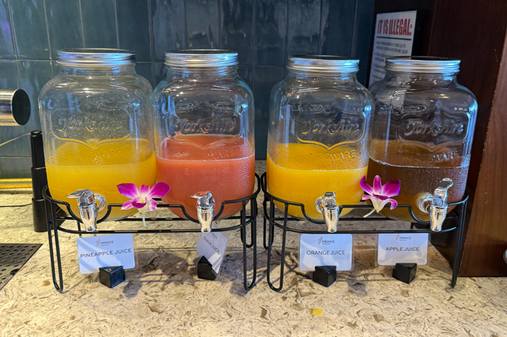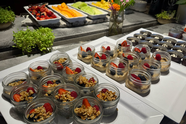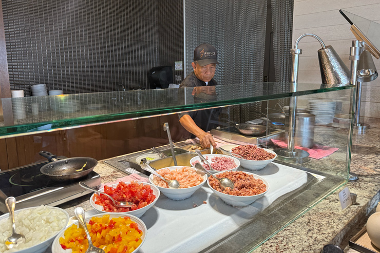 ワイマナロ産の新鮮な野菜、チアシードプディング、ヨーグルトやフルーツなどのコールドバーに加え、フレンチトーストやミニキッシュ、プリンス特製チャーハンといったホットミールまで、バラエティ豊かなラインナップがそろいます。クロワッサンやデニッシュなどのペイストリー、シリアルバーもあり、朝からつい食べすぎてしまうほど。