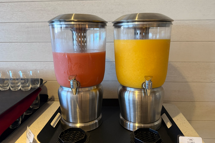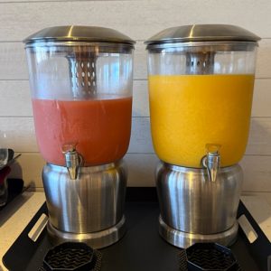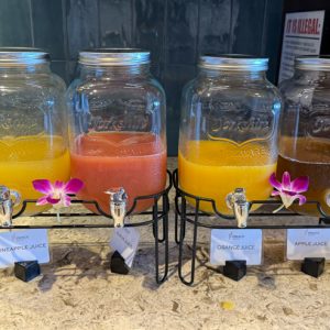 朝食ブッフェでお腹いっぱいだったのですが、やっぱりクラブラウンジにも立ち寄りたくて(笑)。ジュースで乾杯しながら、居心地のいい空間で最後の最後までラウンジを満喫しました。