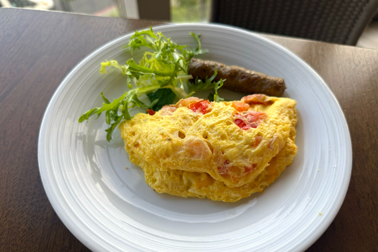 さらに、好きな具材を選んでその場で焼いてくれるオムレツステーションも。私はエビとトマト、チーズを入れて作ってもらい、出来たてのふわふわをいただきました。