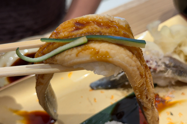 ホテル内にある行列必至の人気寿司店「活美登利寿司 Tokyo」へ。新鮮で質のよい食材を使い、良心的な価格でボリュームたっぷりのお寿司が楽しめるのが魅力。