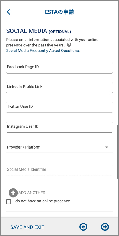 次に、アメリカ国外と国内両方の緊急連絡先(知人、滞在先など)を入力します。