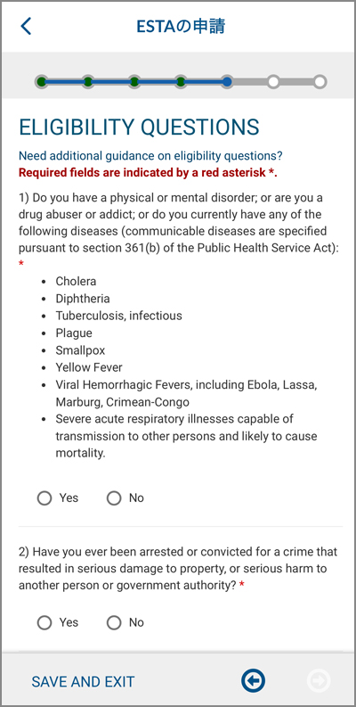 ・ウィルス性出血熱(エボラ、ラッサ、マールブルグ、クリミア・コンゴ、伝染性があり重篤な急性呼吸器疾患)2.これまでに、所有物への重大な損害や、他人または政府当局への深刻な危害をもたらす犯罪で逮捕または有罪判決を受けたことがありますか?