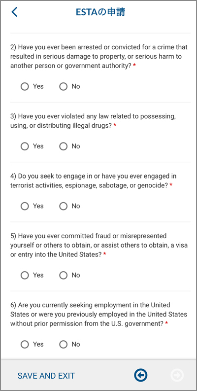 6.現在、米国での就労を希望していますか? または、過去に米国政府の許可を受けずに米国内で働いたことがありますか?