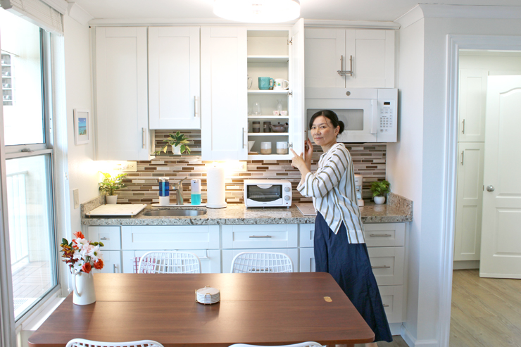 キッチンも充実していて、冷蔵庫や2口のIH、電子レンジ、トースターオーブン、炊飯器、ブレンダーなどがそろっています。もちろん食器やカトラリー、洗剤も完備。簡単な料理なら滞在中でも自由に楽しめるので、自炊派の方にとってはキッチン付きはうれしいですよね。バケレンならではの自由度の高さで、「暮らすように過ごす」ハワイ体験が可能です。