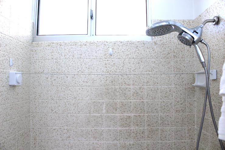 水着や軽い衣類用の収納式物干し(上の写真中央の左右に張られたヒモ部分)もあり、毎日使うものはここで乾燥が可能です。こういう気の利いた機能があると便利なんですよね〜。
