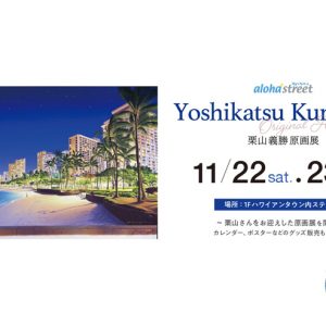 横浜ワールドポーターズ内のハワイアンタウンで11月22日(土)〜23日(日)にハワイカレンダー2025の作家、栗山義勝さんの個展を開催。栗山さんのトークショーも必見。