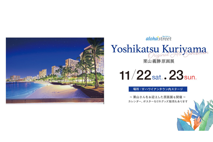 神奈川県横浜市、みなとみらいエリアにあるショッピングモール「横浜ワールドポーターズ」内のハワイアンタウンで、11月22日(土)〜23日(日)10:30〜21:00に、ハワイカレンダーの作家、栗山義勝さんの個展が開催されます。