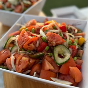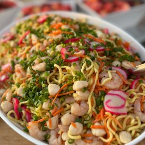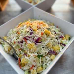 冷菜コーナーには、サラダ、パイナップル・コールスロー、ロミサーモン、シーフードヌードルサラダなど。