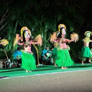 温かい笑顔で迎えてくれるので、忘れられない思い出になりますよ。ちなみに、金曜限定の「フライデー・ファイヤーワークス・ルアウ」では、ショーの後に夜空に打ち上がるヒルトン名物の花火が観賞できるんです。