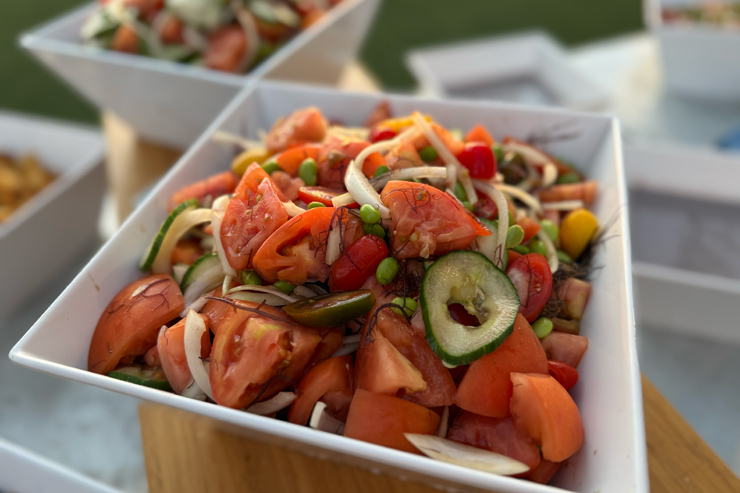 冷菜コーナーには、サラダ、パイナップル・コールスロー、ロミサーモン、シーフードヌードルサラダなど。