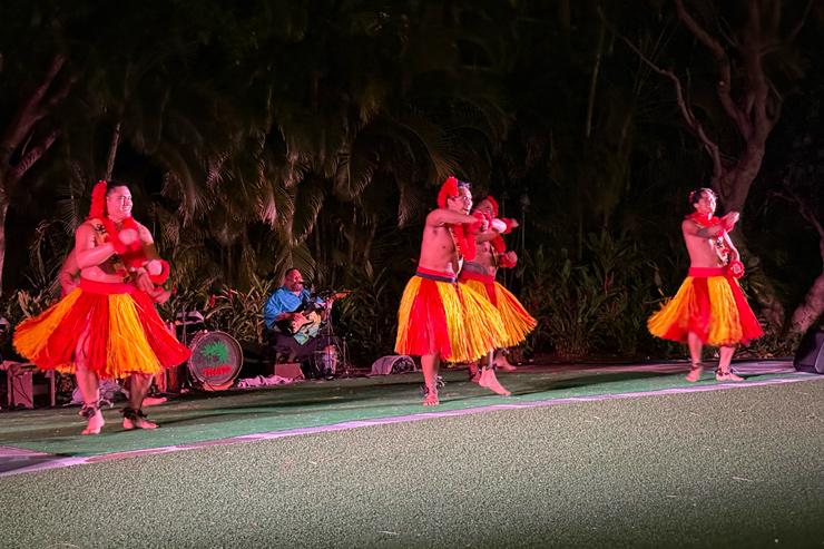 温かい笑顔で迎えてくれるので、忘れられない思い出になりますよ。ちなみに、金曜限定の「フライデー・ファイヤーワークス・ルアウ」では、ショーの後に夜空に打ち上がるヒルトン名物の花火が観賞できるんです。