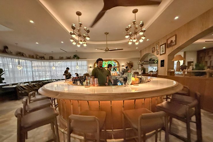 入ってすぐに目に飛び込んでくるのは、お洒落なラウンドカウンター。