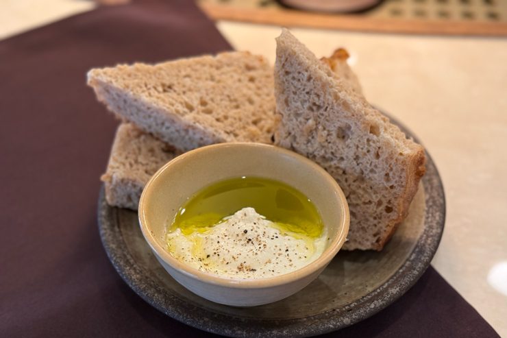 に自家製リコッタといただくふわもち食感のフォカッチャ。これはサイドにぜひオーダーしていただきたいメニューです。