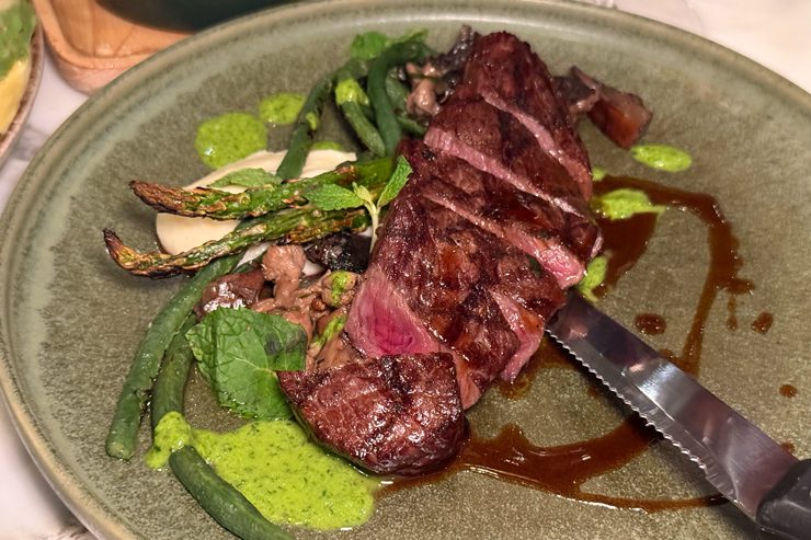 シェフおすすめのステーキ。温野菜とチーズマッシュポテトが添えられているのですが、サイドのマッシュルームが美味しかったです。