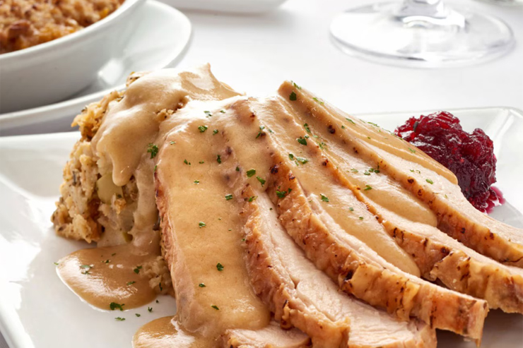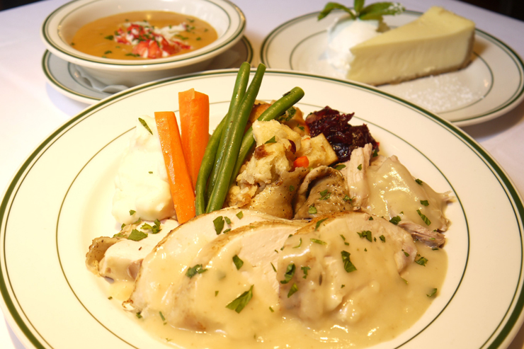 特製のオーブンで焼き上げる、上質で柔らかいジューシーなプライムステーキで有名な「ルースズ・クリス・ステーキハウス」。感謝祭当日は11:00からオープンし、伝統的な「ターキーフィースト(3コース)」を用意。メニューには、サラダ、メインにソーセージとハーブのスタッフィング、自家製グレイビーなどが添えられたスライスターキー、そしてデザートがセットになった贅沢な内容。店内で楽しめるほか、ターキーバンドルやサイドメニューのテイクアウトもあります。