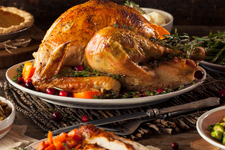感謝祭メニュー:・プレミアム・ターキーディナー$179.99(6〜8名分)