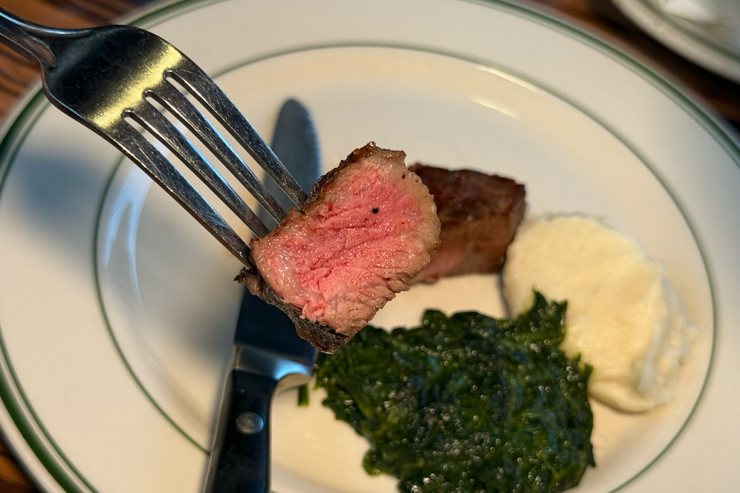柔らかくジューシーなステーキは、ほろ苦いほうれん草、クリーミーマッシュポテトと一緒に食べると絶品。