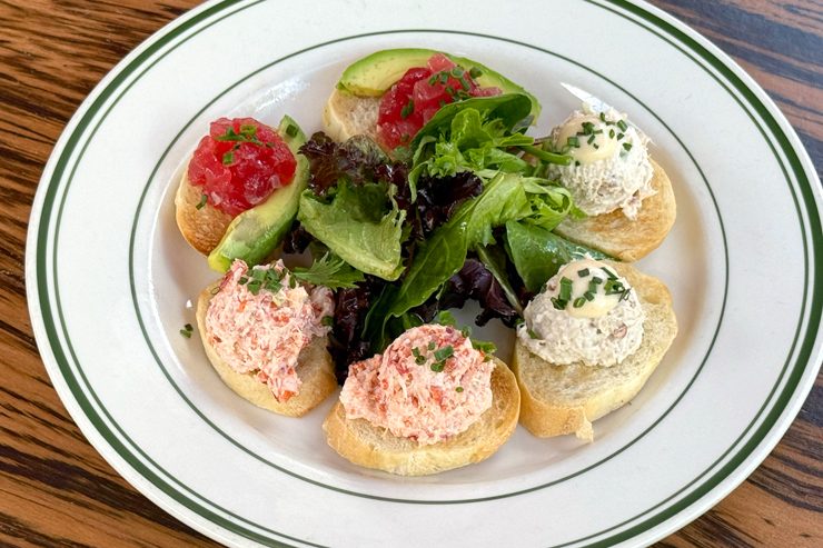 マグロ・ロブスター・カニをクロスティーニで楽しめるセット。