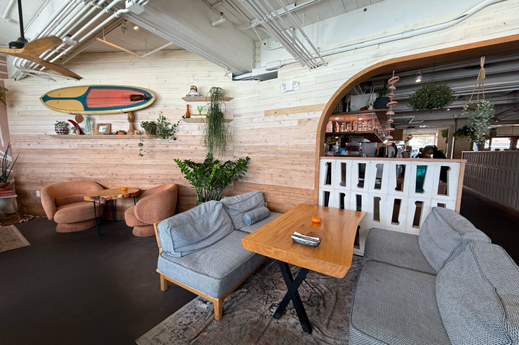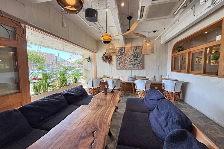 ヘブンリー・ハワイカイは、テーブル席やカウンター席はもちろん、ソファ席もたくさんあって、とにかく居心地がいいんです。つい長居しちゃう空間!