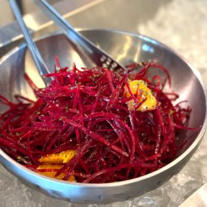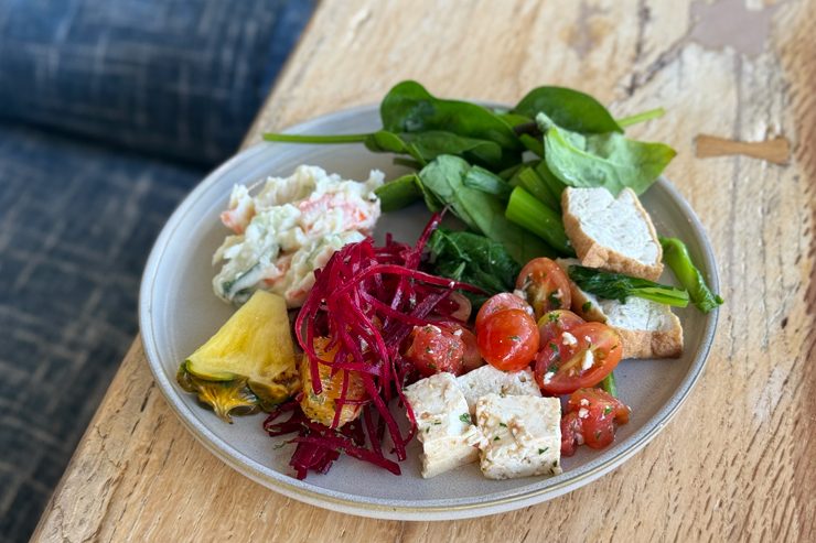 サラダバーの内容は日によって変わりますが、ローカル野菜がモリモリ食べられるのが魅力。ビーツやポテトサラダ、トマト&豆腐カプレーゼなど、手の込んだサラダが並ぶ日もあって嬉しいんです。
