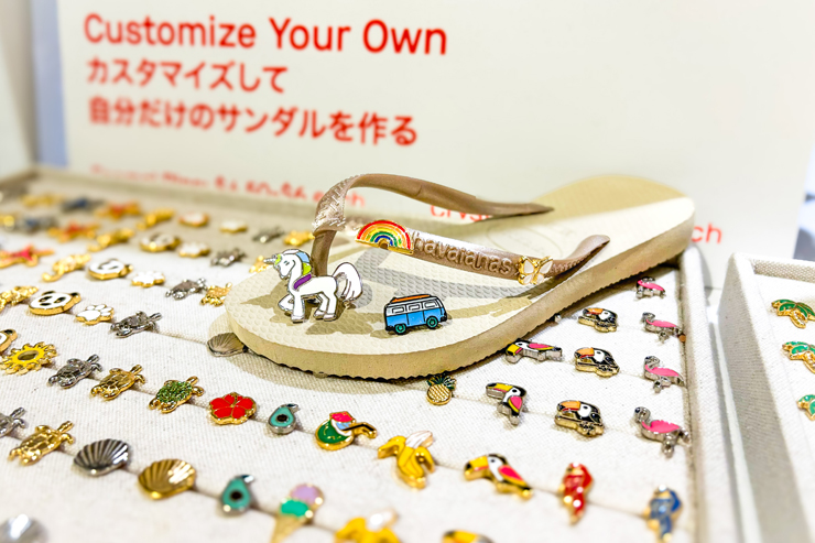 ・店頭で購入したサンダルにチャームをプラスしてカスタマイズ。2025年12月31日までの期間中は、チャーム1つの購入で2つめ無料。(同額またはそれ以下に限る)
