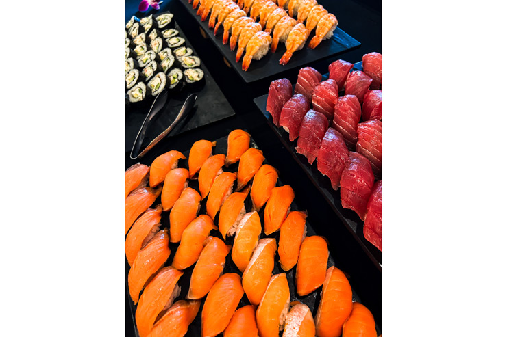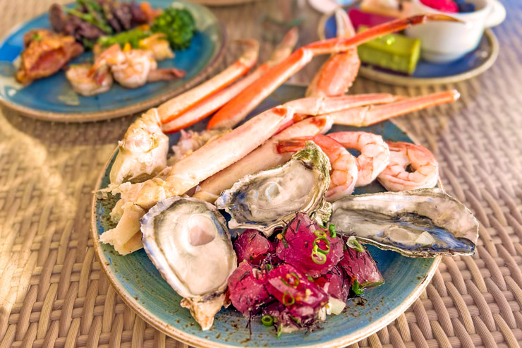 常夏のハワイでクリスマスを迎えるなら、ワイキキの海風を感じるオープンエアレストランへ。ハイアット リージェンシー ワイキキ3階の「ザ ビュッフェ アット ハイアット」では、12月24日、25日の2日間限定でクリスマスディナービュッフェを開催します。カニや生牡蠣、ポケなどのシーフードに、目の前で切り分けるプライムリブ、ハワイ郷土料理に加え、ハチミツハムやラム肉、ハワイ風クリスマス野菜料理、エッグノッグチーズケーキ、ホットチョコレートステーションまで、50種類以上のメニューが勢ぞろい。握り寿司やカルビ、ハワイ産カンパチのロースト、チョコレートファウンテンなど定番人気メニューも味わえます。