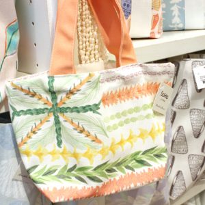 ローカルにも旅行者にも人気が高いのがオリジナルディフューザー($59.80)とキャンドル($32.80)。どちらもジュートバッグに収納された状態で販売されているのでそのままギフトにしてもOK。デザイン豊富なエコバッグ($28.80)は厚手の生地を使用しているので、長く使用できるのが魅力です。ペーパーナプキン($4.80)、木製のチャーム($5.80)、アロハなトレイ($10.80〜)といった毎日の生活にハワイ気分をプラスしてくれる生活雑貨も手頃な価格で充実しています。