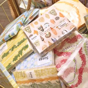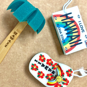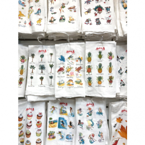 人気はキッチンタオル($15)で、アロハなデザインがバラエティ豊かにそろいます。また、フラガールの箸置き($3.75)や、ハワイらしさを感じるナンバープレート、ヤシの木などをモチーフにしたユニークなスポンジ($5〜)は、小さくて軽いのでまとめ買いをしてもコンパクトに日本へ持ち帰りができますよ!