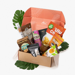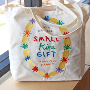 お店のベストセラーアイテムは一箱に甘いお菓子としょっぱいスナックを詰め合わせたセット($105)。一箱丸ごとプレゼントするのはもちろん、中身をバラしてプレゼントしたい人の味覚にあったスナックを選んで贈ることもOK。このほかオリジナルバッグやハワイのコスメブランド「UA Hawaii」の製品、アート作品などもラインナップ。好きな商品を組み合わせてオリジナルのギフトボックスを作ることも可能です。