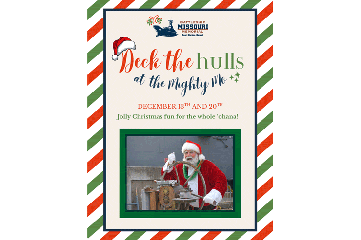 開催時間は12月13日(土)と20日(土)9:00〜14:00まで。参加するには、家族またはグループごとに、予約料$10が必要です。この予約料はイベント運営の適正管理に使用されるほか、全額が戦艦ミズーリの保存活動に充てられます。