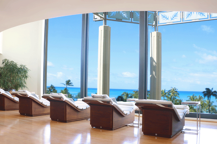 ナ ホオラ スパの象徴ともなっている吹き抜けの大きな窓と、その向こうに広がる太平洋の絶景を堪能できるリラクゼーションラウンジは、施術前だけではなく、施術後でも自由に使用可能。キラキラと輝く海を眺めながら「日常を忘れて何もしない」という究極の贅沢時間を満喫できます。スパ内にはドライサウナとシャワーもあるので、ハワイ到着日の施術を予約しておけば、ホテルのお部屋の用意ができるまでの時間を有効活用するのに最適。フライトで疲れた身体を初日にリセットして、翌日からのハワイをさらに楽しみましょう!