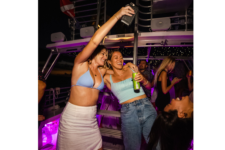 ワイキキ・カウントダウン花火クルーズは、2階建てのボートで23:00に出航する2時間半のクルーズ。DJのライブ音楽で盛り上がるパーティタイムが楽しめます。