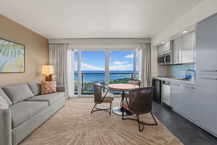 今回の改装では、ワイキキタワーとコナタワーの全客室に、特注家具やモダンな照明を導入。ハワイらしさを演出するレイをモチーフにしたアクセントウォールを取り入れ、レイアウトも見直すことで、より明るく開放感のある室内を実現しました。