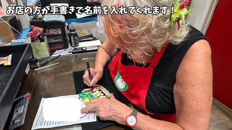 購入したオーナメントに、その場で名前を刻印してくれる無料サービスです!混雑時は少し時間がかかることもあるので、刻印を希望される方は早めの来店がおすすめ。