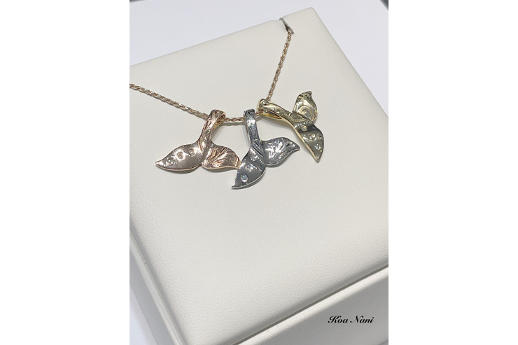 ハワイの伝統とモダンが融合するハワイアンジュエリーが評判の「コアナニ」から、ホエールテールをモチーフにした3つのペンダントをご紹介! ホエールテールとは、クジラの尾尻のことで、ハワイアンジュエリーで人気のあるモチーフ。クジラに出会うこと自体が「幸運」とされる、ラッキーチャームとしても人気のデザインです。