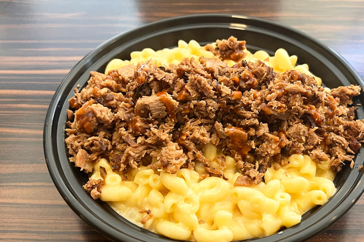 アメリカの定番フード、マック&チーズにスモークミートを乗せたマック・ボウル($14〜)もおすすめ。スモークミートはブリスケット、ベーコン、プルド・ポークから選べます。