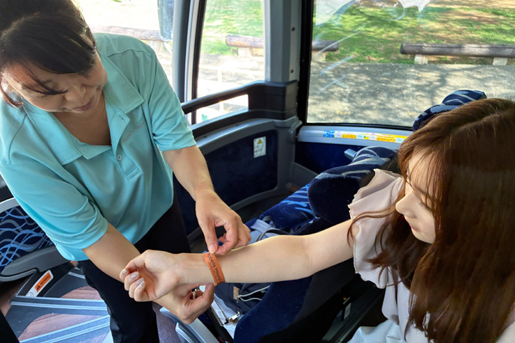 到着したらスタッフの方がリストバンドをつけてくれます。現地にスタッフ常駐のキオスクがあるのも安心です。