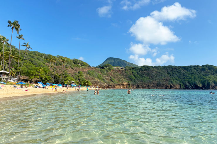 透明度の高い遠浅の海には、たくさんの熱帯魚が泳ぎ、波も穏やかなためシュノーケルスポットとしても人気です。ハナウマ湾は、ハワイ州が管理する自然保護区のため1日の入場人数が制限され、旅行者が入場するにはオンラインで事前予約が必須。