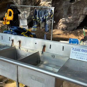 ちなみに、ビーチにはシャワー、お手洗い、ライフジャケット&シュノーケルギアのレンタル施設があります。