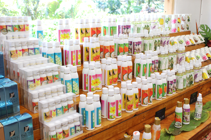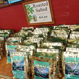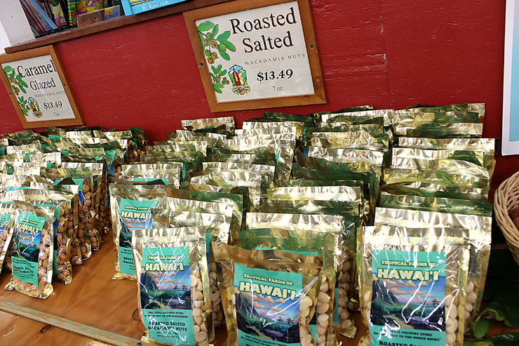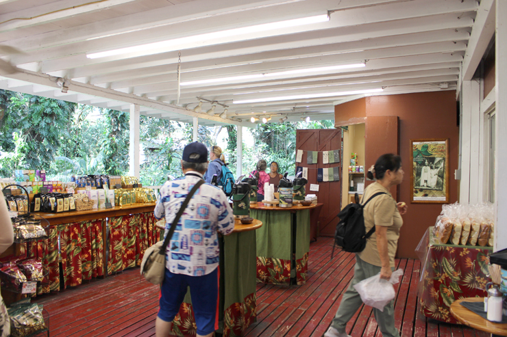 農園では、いくつかのフレーバー付きナッツの試食やハワイ産コナコーヒーの試飲もあり、メイド・イン・ハワイのスキンケアアイテムも豊富にそろっているので、お土産選びにも最適な場所でした。