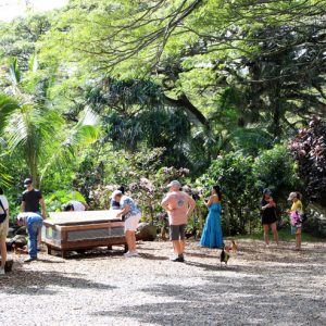 ここでは、試食だけでなく自分でマカダミアナッツを割る体験ができるのが魅力。ガイドのリュウキさんがひと通りファームについての説明やトイレの場所など教えてくれた後「マカダミアナッツ割りを体験をしたい方は僕についてきてくださいね〜」と、建物の裏へと誘導してれました。
