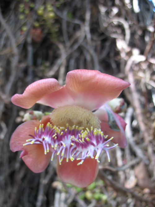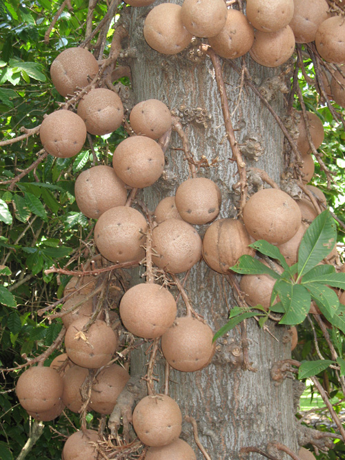 直径20㎝近くある砲丸の木の実。かなり大きな花をつけていることも