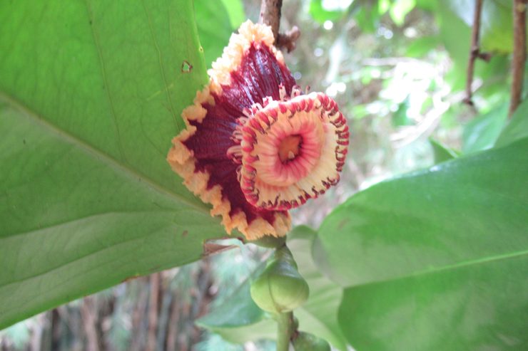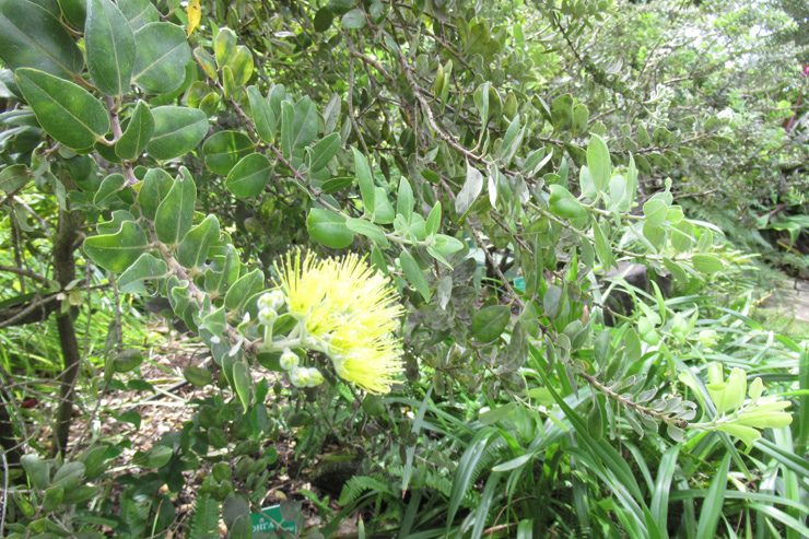すでにふれたように、ハワイ原産植物はリリウオカラニ植物園、フォスター植物園は世界の熱帯植物をコレクション…と公けに区分されているためでしょうか。資料でもウェブサイトでも強調されていないものの、こちらにもハワイ&ポリネシアならではの植物がたくさん! サトウキビやタロイモ、パンノキなどももちろんあるうえ、黄色のオヒアレフアや、伝説の残るナウパカの花、レイの素材として愛されるシダ、ナーパラパライなども見つけることができました。