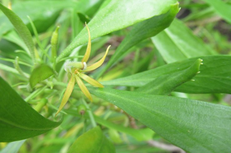 特に、ハワイでも滅多に見られない「山のナウパカ」を見つけたのは驚きでした。半円型をしたナウパカの花には海と山に離れて死んだ恋人たちの化身との伝説があり、海に咲く類のナウパカは始終見かけます。ですが山で進化した「山のナウパカ」を見たのは、私にとって生涯2回目でした(1回目は、ビショップ博物館の庭で発見)。