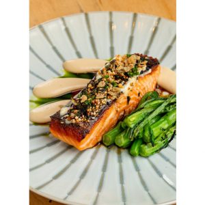 シェフを務めるのは漁師町として歴史を持つハワイ島ヒロで生まれ育ったデイセン・マスダ氏。フレンチと和食をベースにしたクラシックな調理を学び、寿司の経験も持つ実力派で、海鮮を活かした料理を追求しています。