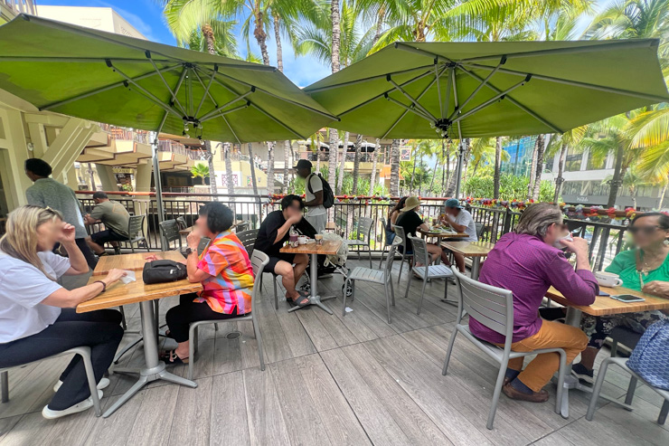 おすすめは、ロイヤル・ハワイアン・センターの中庭が見渡せるこちらのお席。